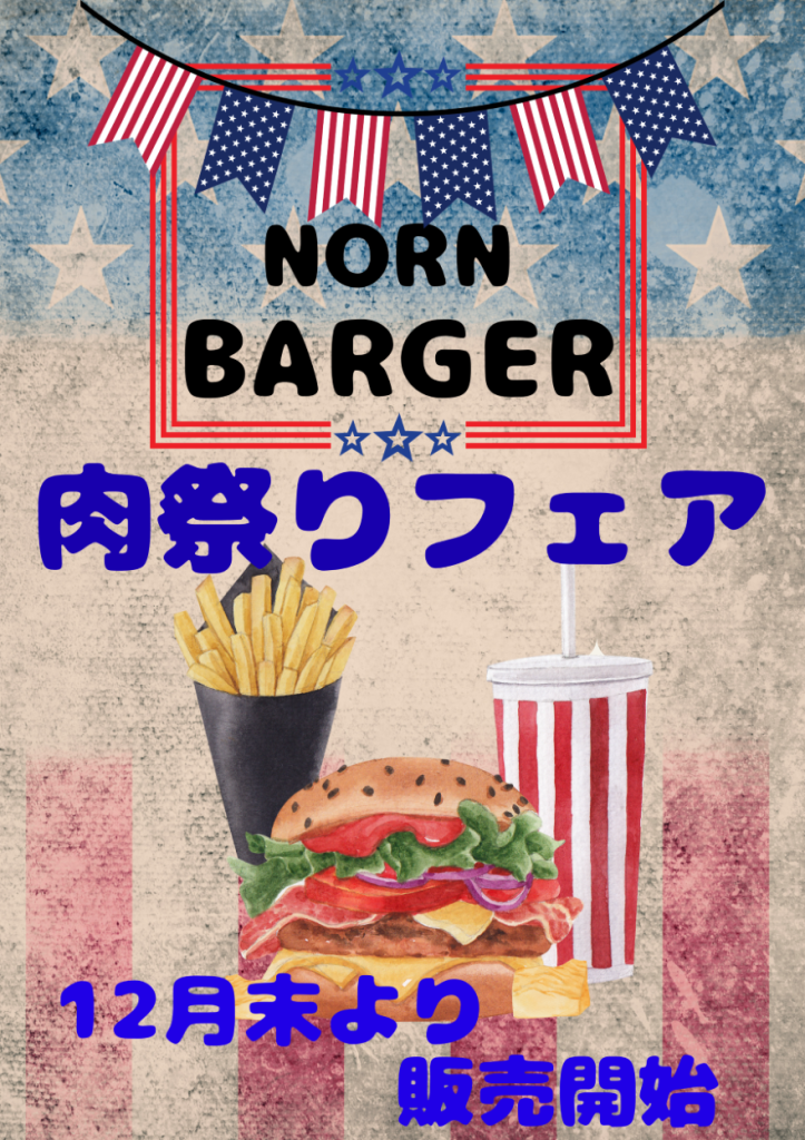 バーガーshopも「肉祭りフェア」開催 2025/12/21 14:30 この記事をSNSでシェア 『ハンバーガーも肉が凄い』 「ノルンバーガー」でも肉祭り🍗 月替わりおたのしみメニューをご用意しております。 当日バーガーshopにてメニューをご確認下さい!! リニューアルしたバンズとパティをご堪能あれ