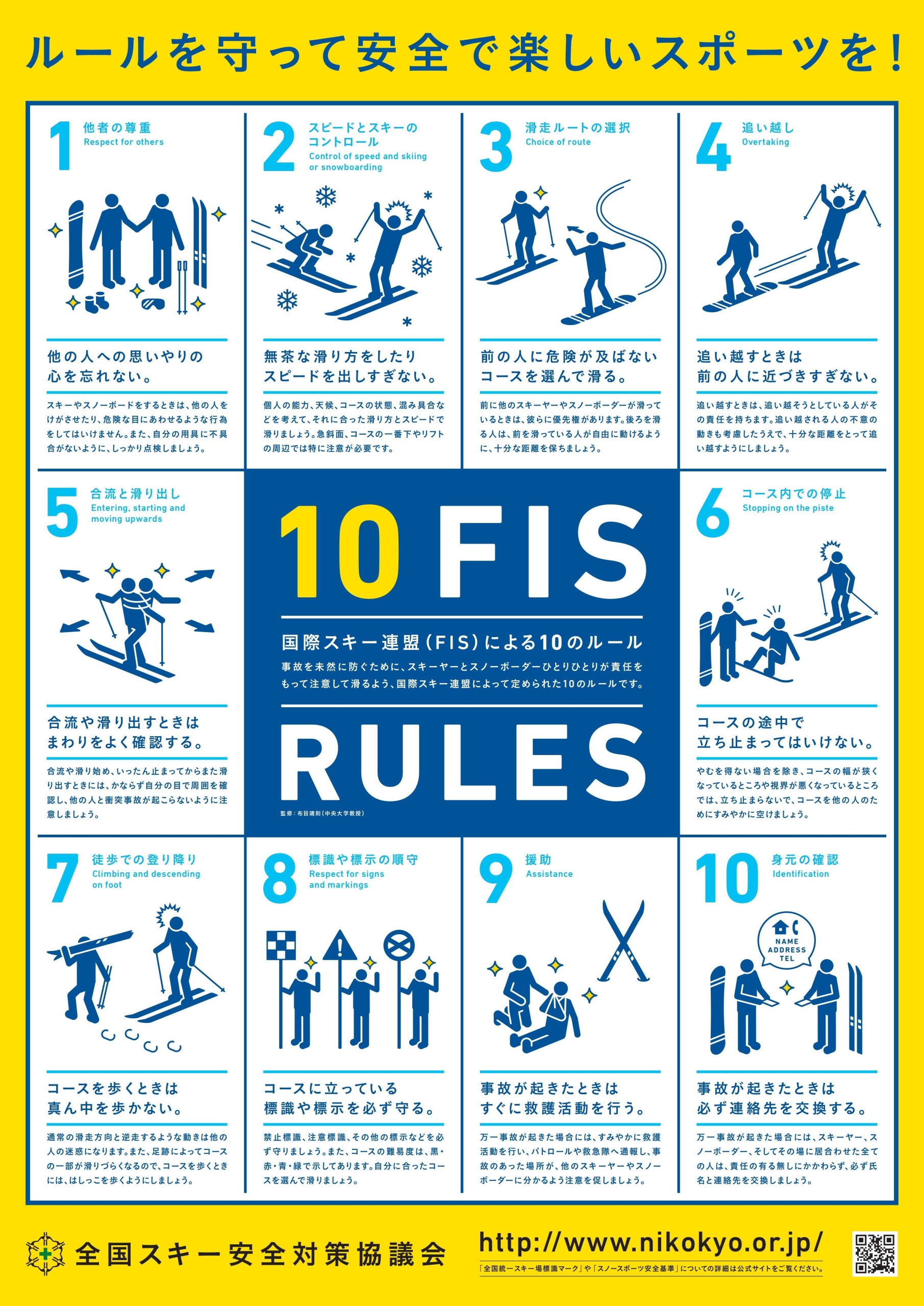 スキー場での安全ルールを守って楽しい1日をお過ごしください。 2026/01/27 07:43 この記事をSNSでシェア スキー場での安全ルールを守って楽しい1日をお過ごしください。 以下の安全啓発ポスターのルールは多くのスキー場で共通する内容となります。 初心者だからわからなかった!自分は上級者だからミスはしない!は事故が起きてからでは通用しません。 また、ヘルメットや転倒時の衝撃を和らげる装具の使用をお勧めします。 ルールを守って安全で楽しいスポーツを1 スノーボードを安全に楽しく滑ろう